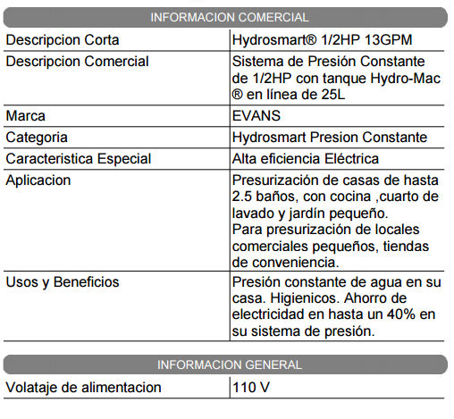 Tanques precargados de diafragma marca EVANS para equipos hidroneumáticos con cámara de agua en Butilo, acabados de línea blanca, presión probada en todos los tanques, capacidad hasta 450 lts (119 galones) probados con helio con cinco años de garantía.